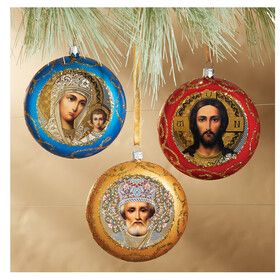 Set of 3 Christmas Icon Ornaments Virgin of Kazan - Christ - St Nicholas